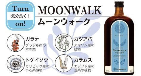 MOONWALKは、飲むと重力をあまり感じないようになり、まるで月面を歩いてるかのような、ふわふわとした感覚を楽しんでもらいたい事から『MOONWALK』と命名。